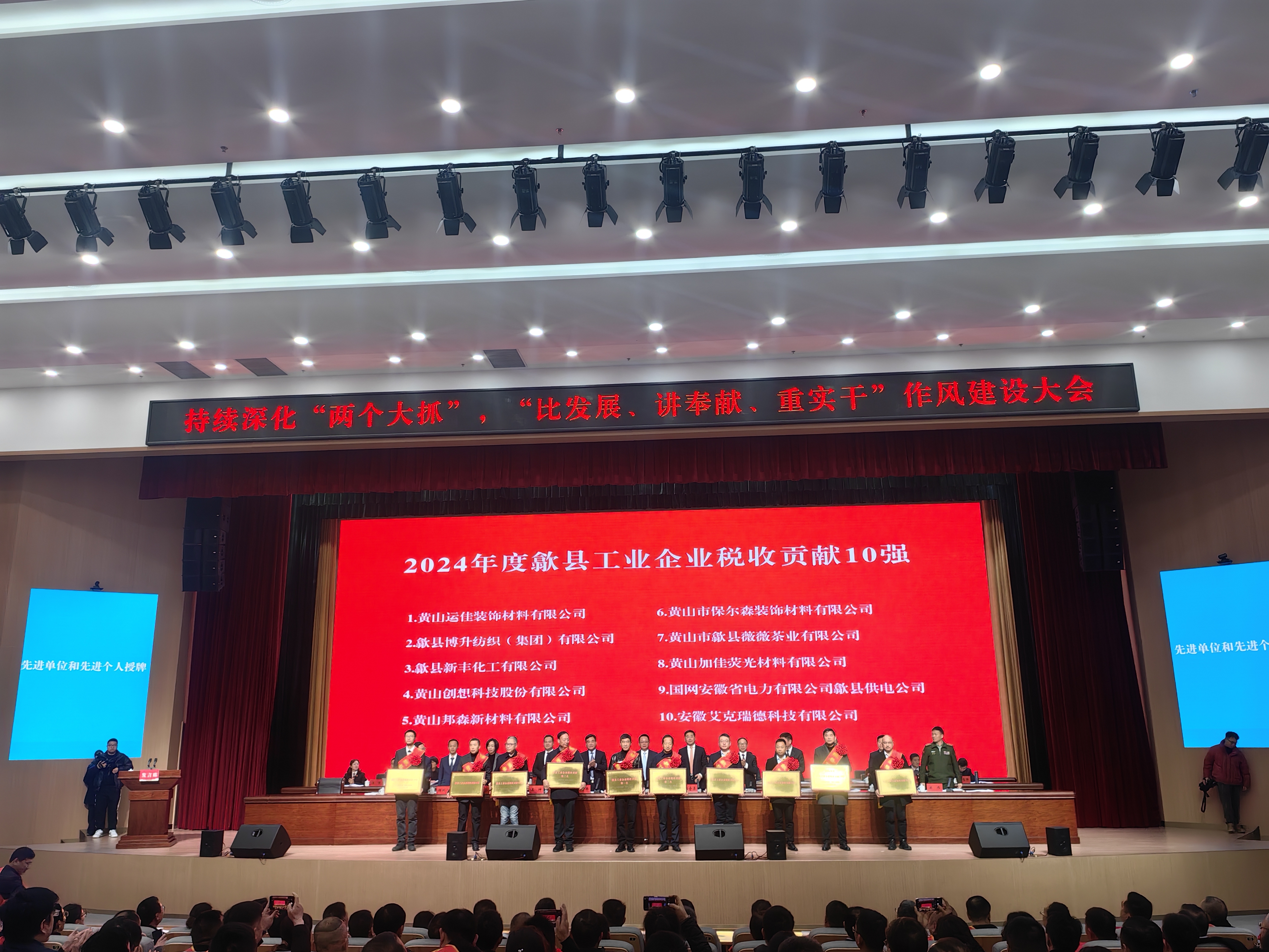 公司榮獲“歙縣工業(yè)企業(yè)稅收貢獻(xiàn)10強(qiáng)”榮譽(yù)稱號(hào)